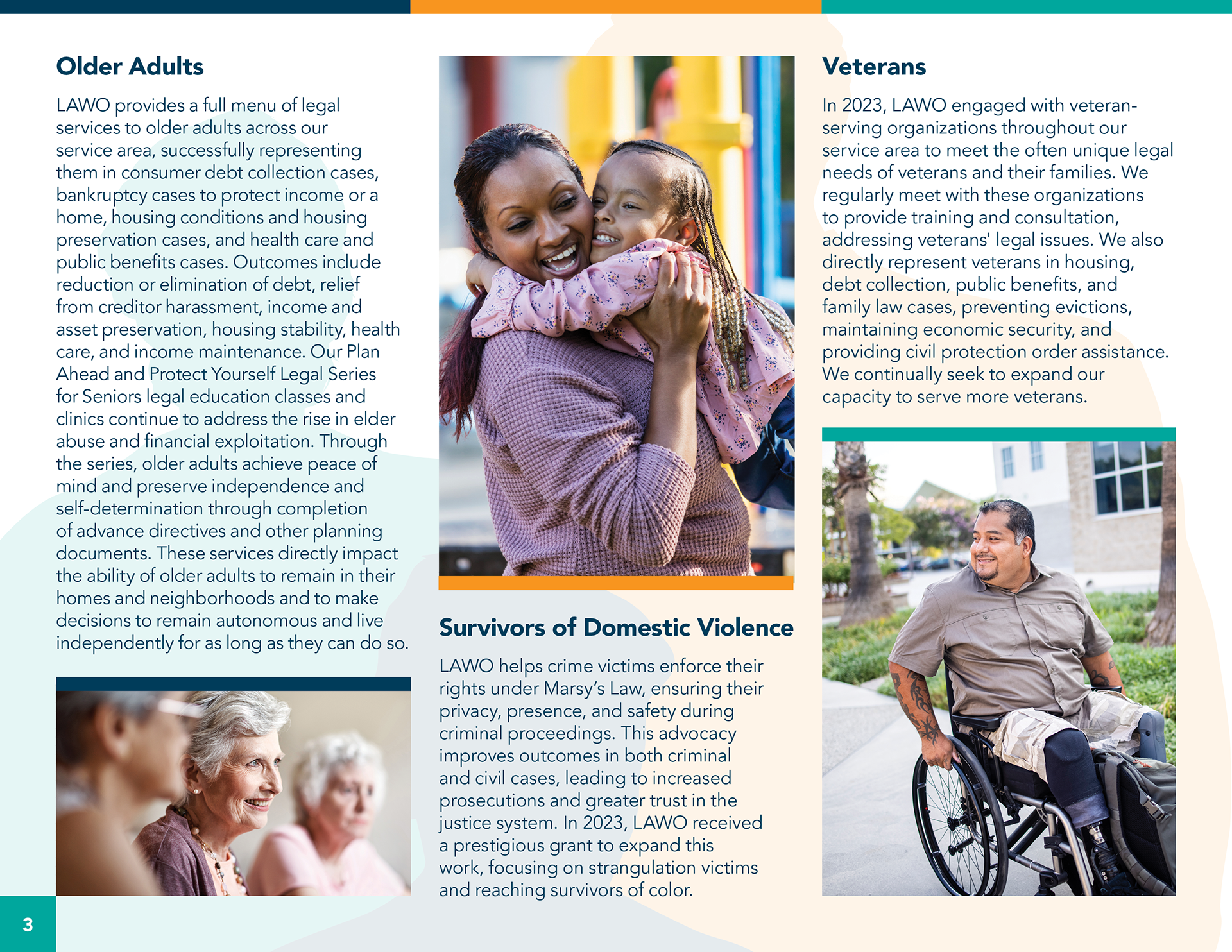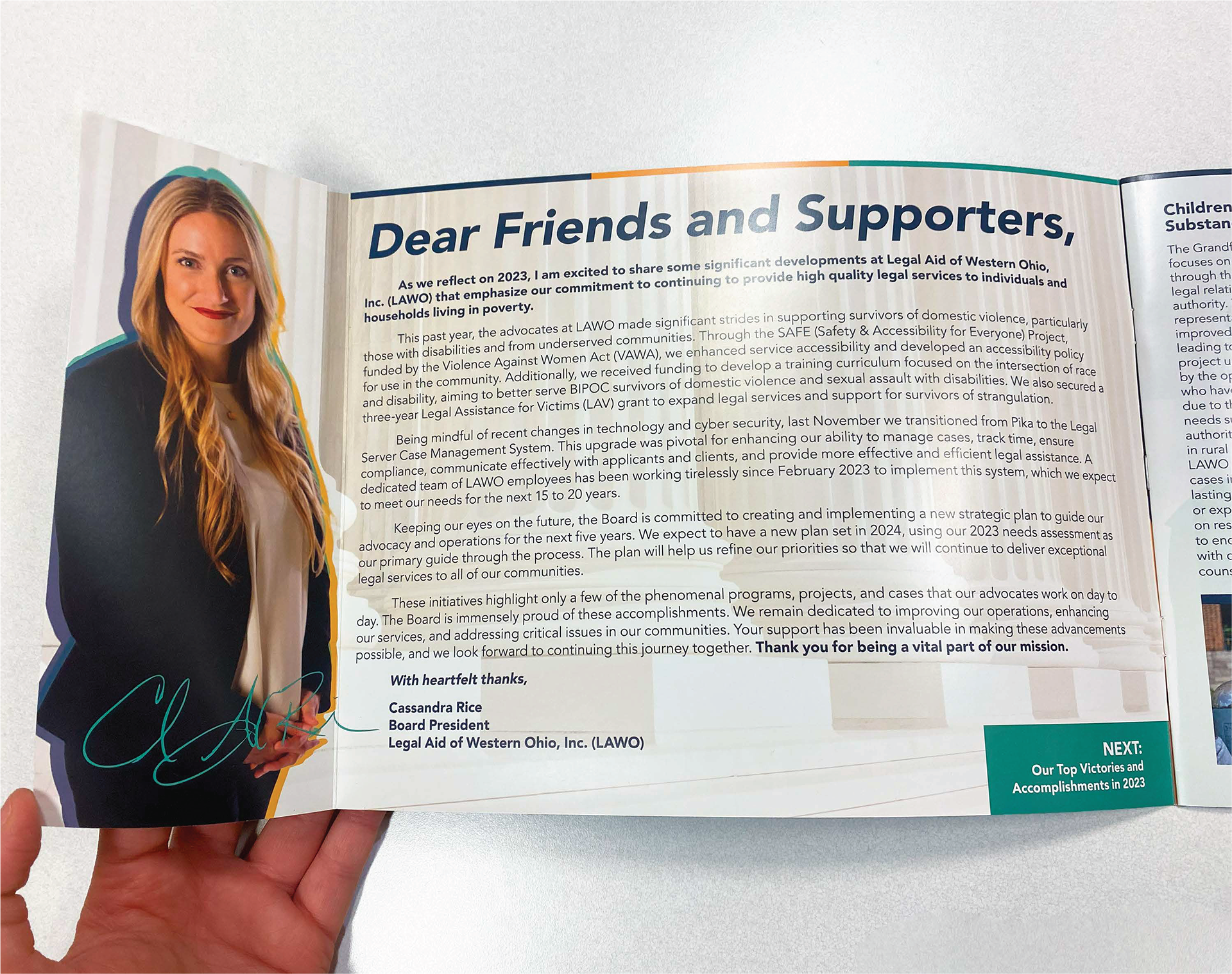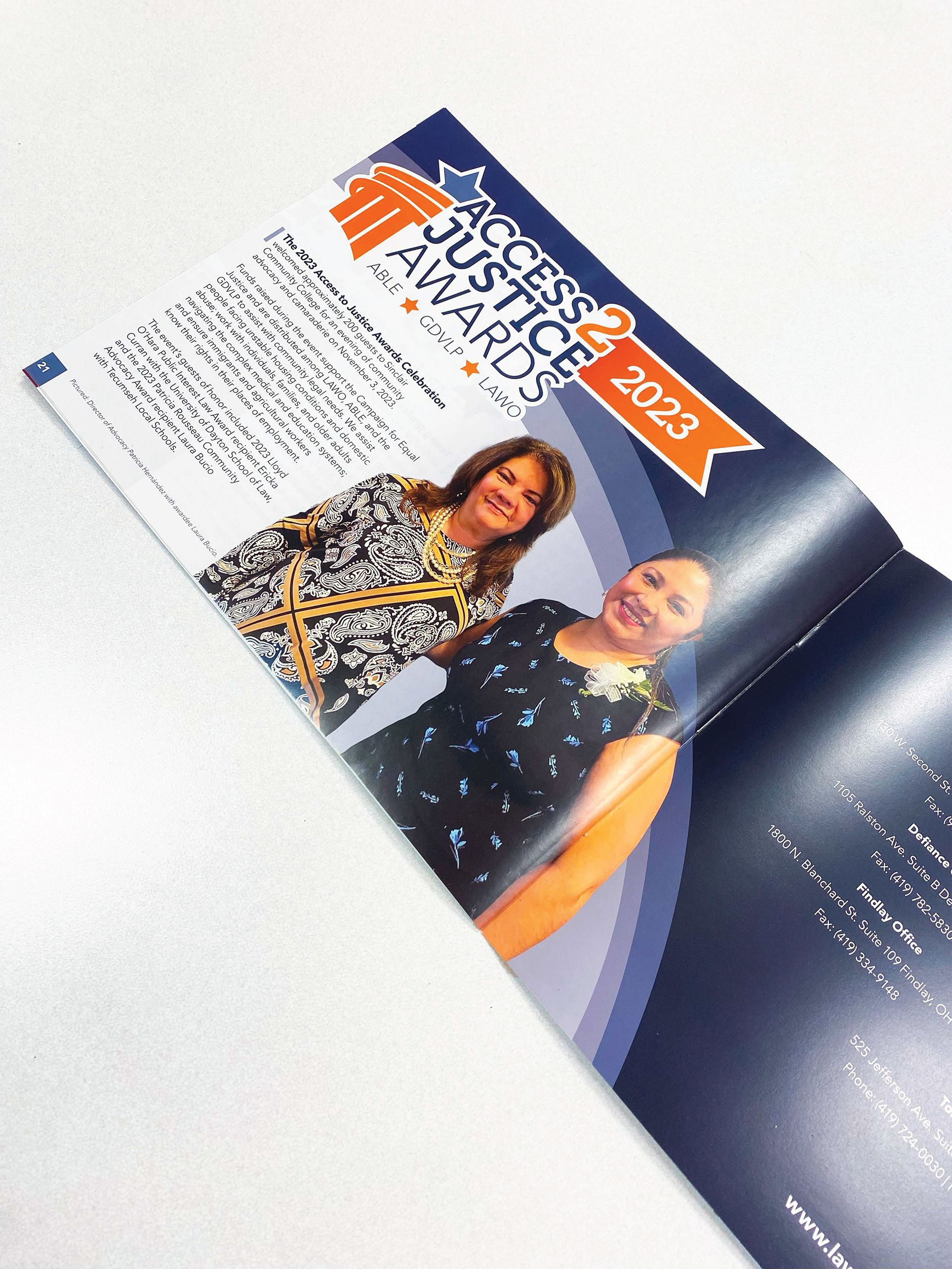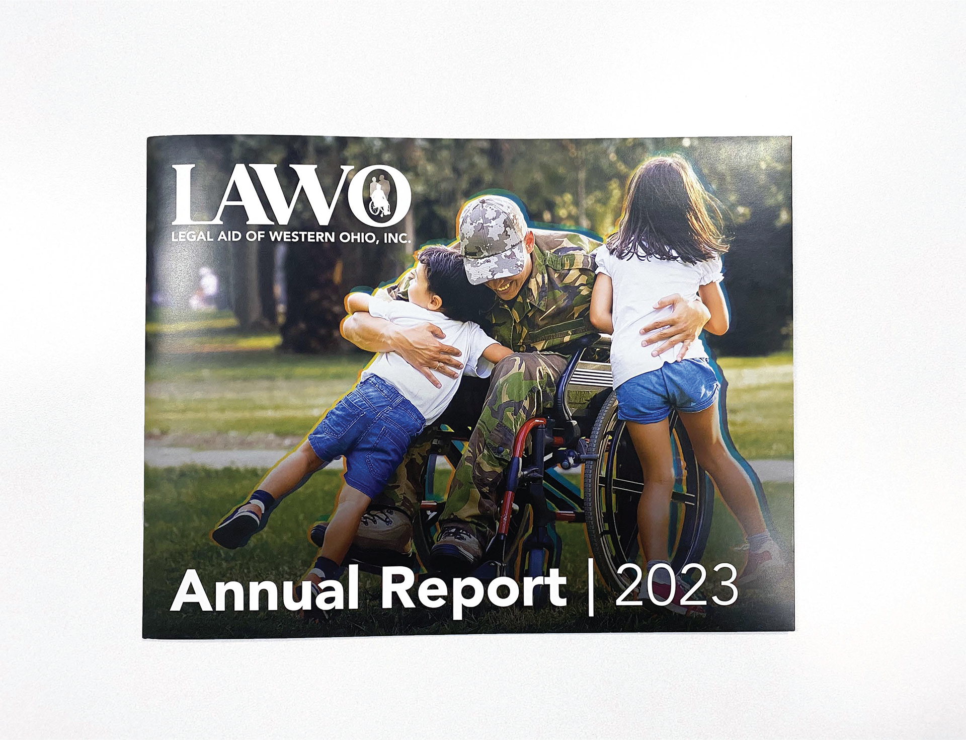 LAWO 2023 annual report. 4-color offset, saddle stitch with french folds. 2024