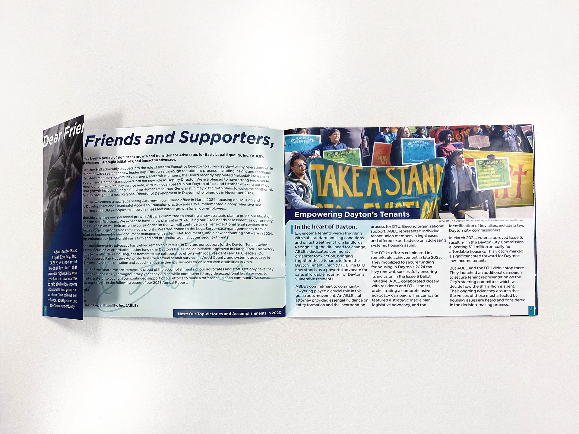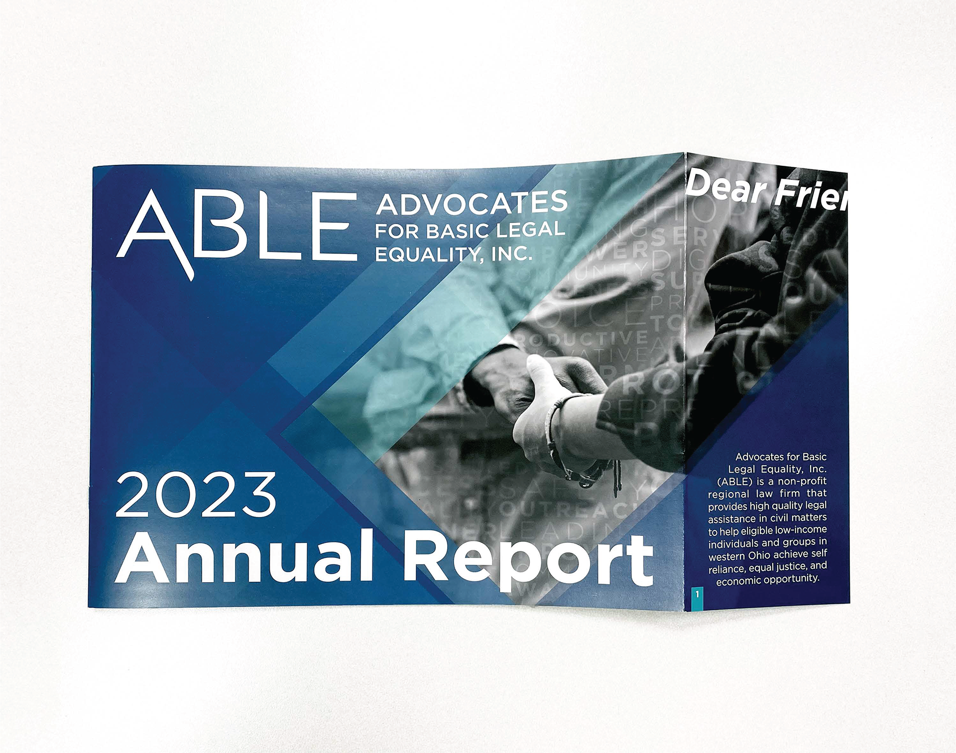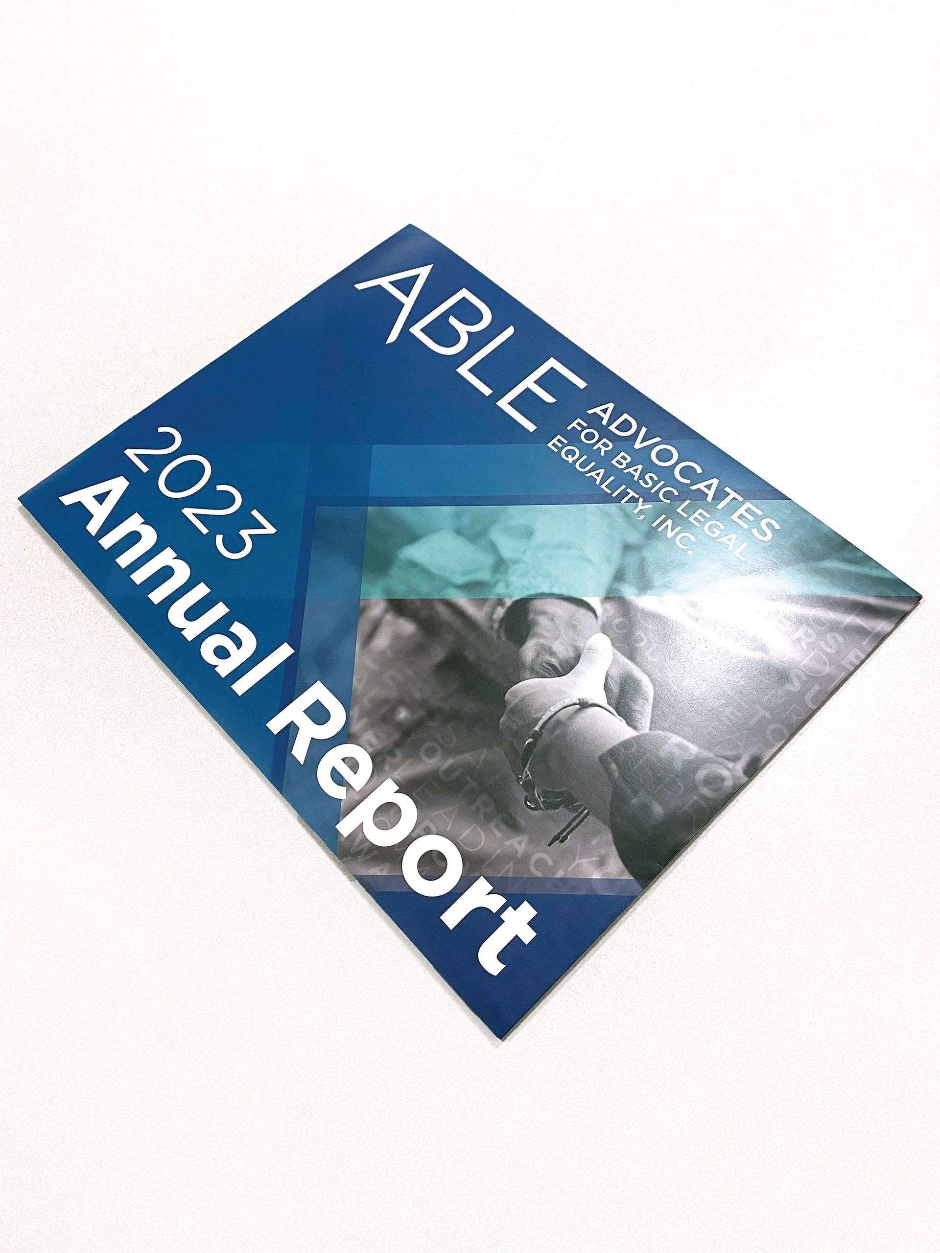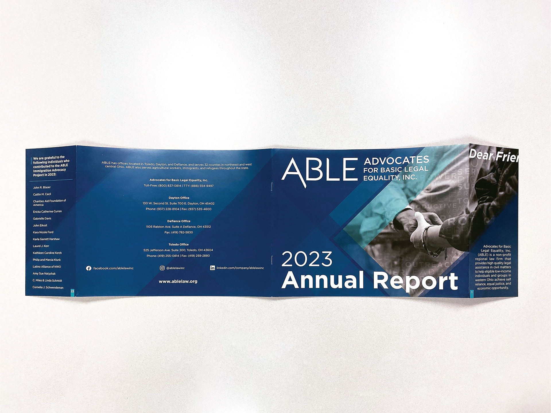 ABLE 2023 annual report. 4-color offset, saddle stitch with french folds. 2024