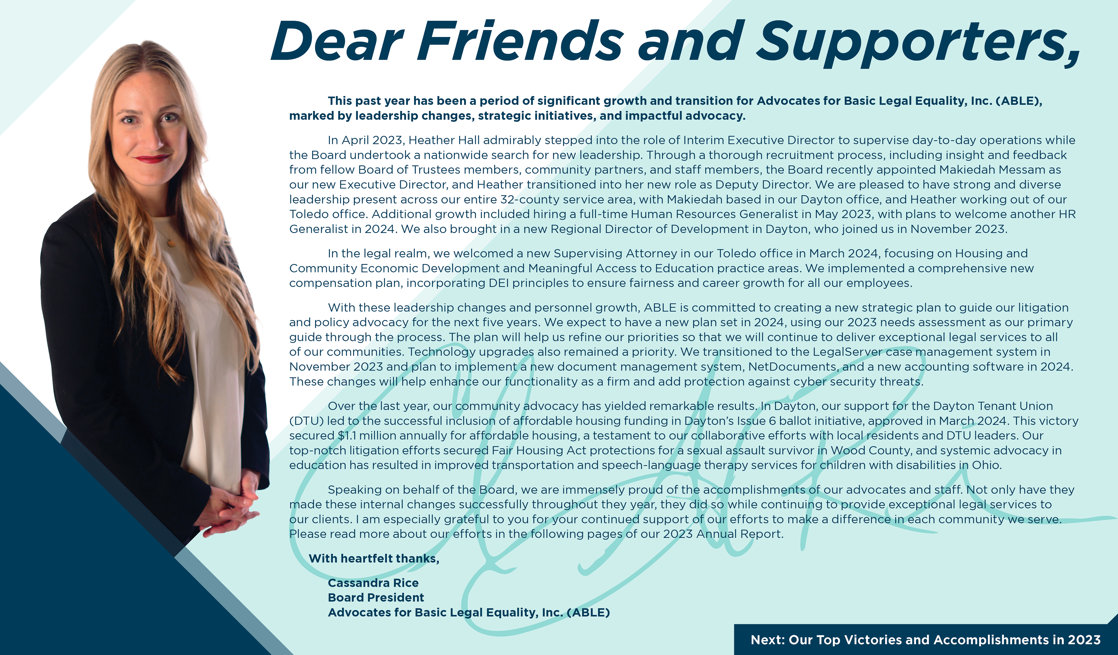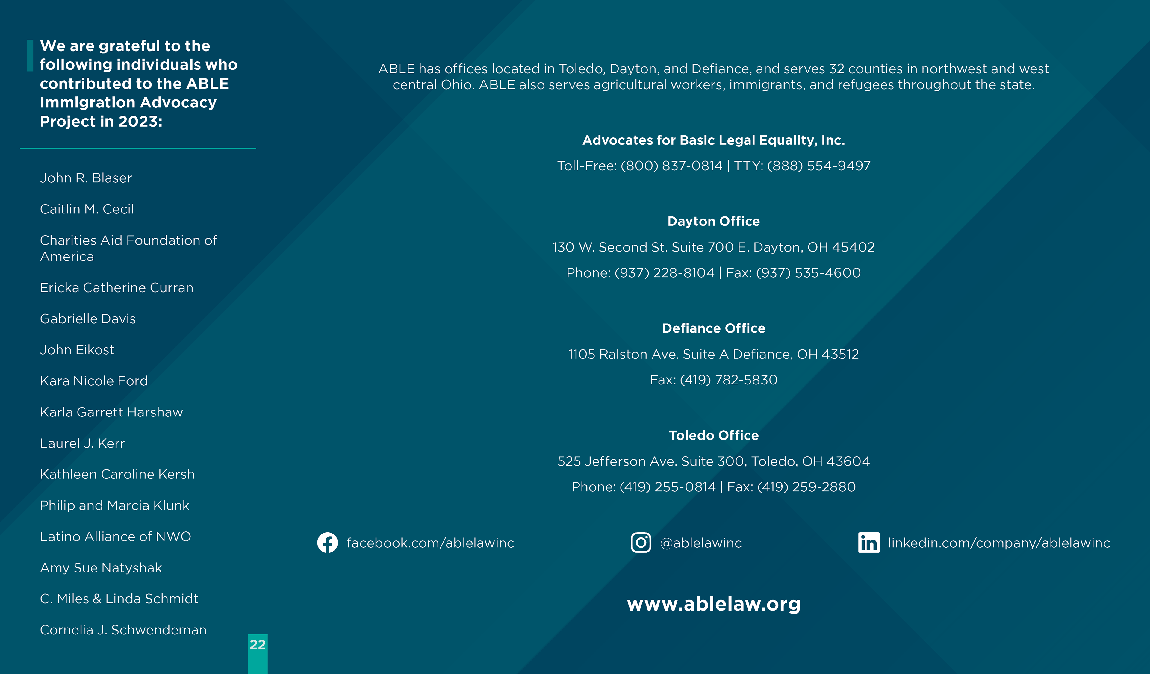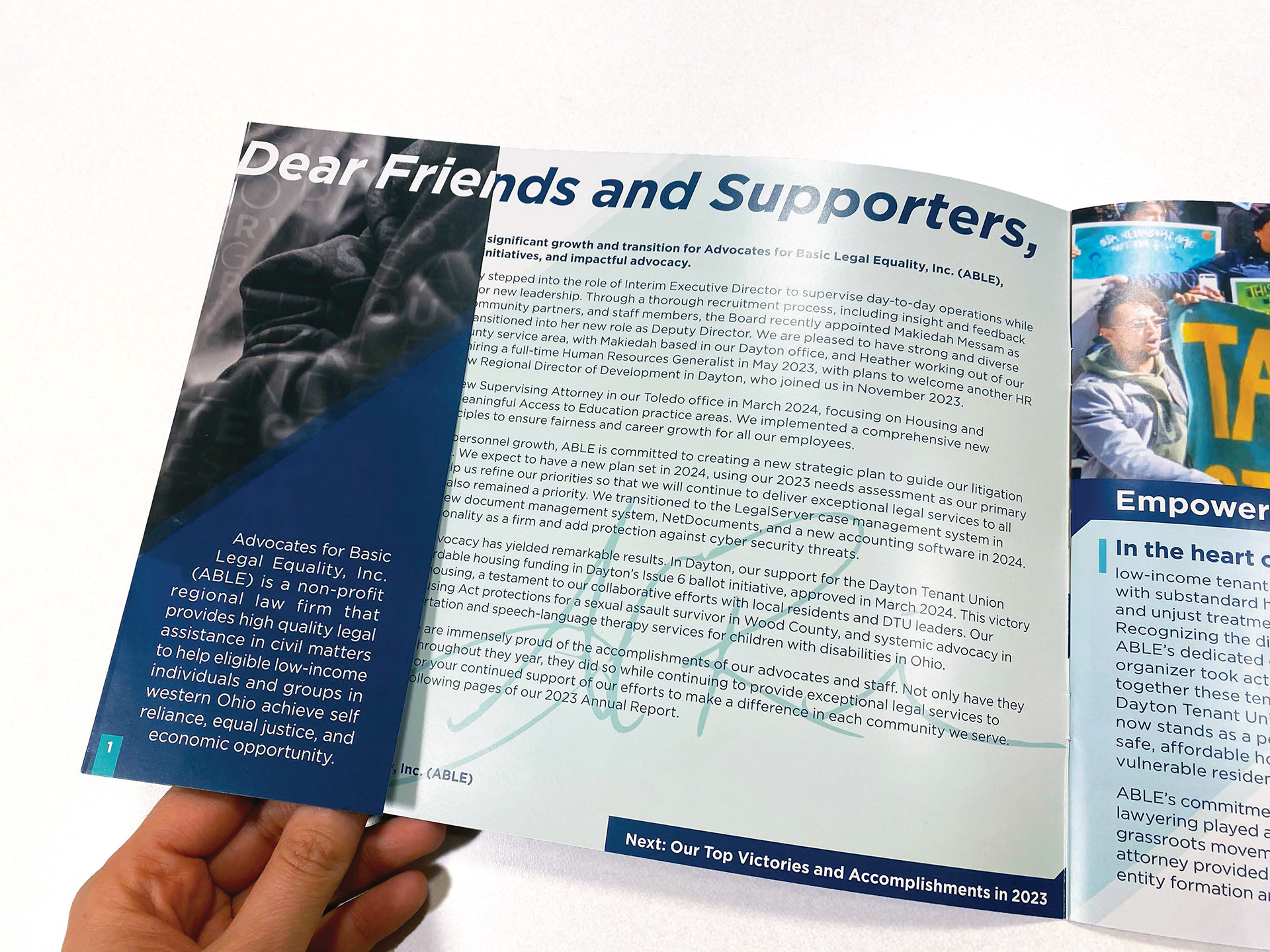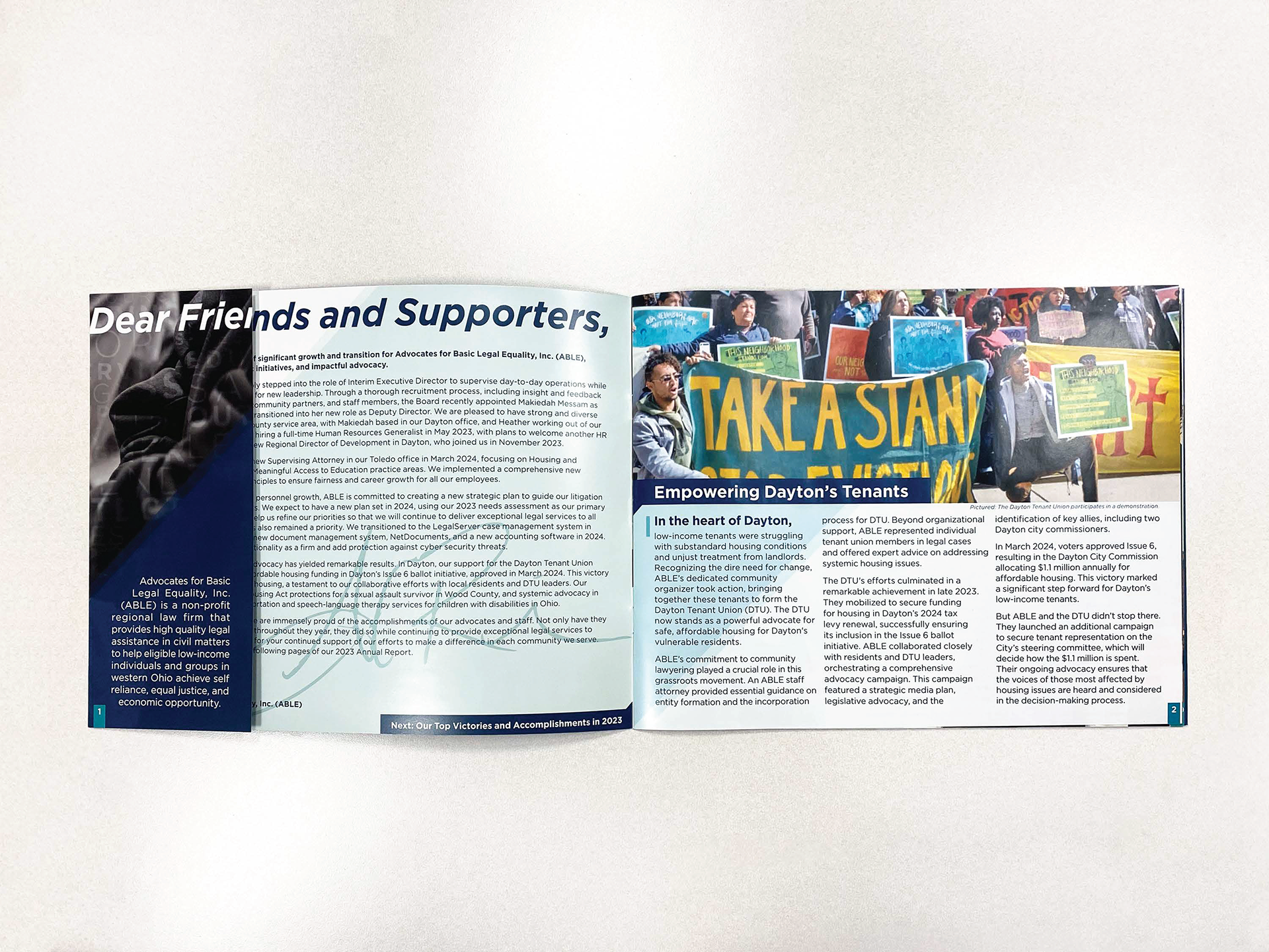 ABLE 2023 annual report. 4-color offset, saddle stitch with french folds. 2024